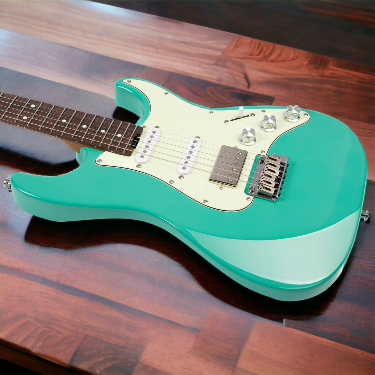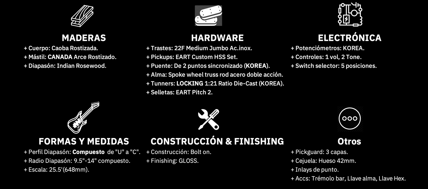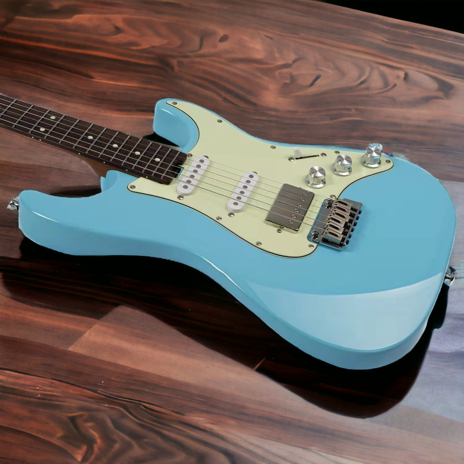 Super versatile Strat type, with the right balance between modern and traditional... HSS configuration. tremolo bar Stainless Steel frets. LOCKING TUNER as standard. BEAUTIFUL !!! modern colors UNIQUE. You will not find on the market, any guitar with this quality, and at this price level . Do you want to know how it sounds? LISTEN TO IT IN OUR EART ARENA.