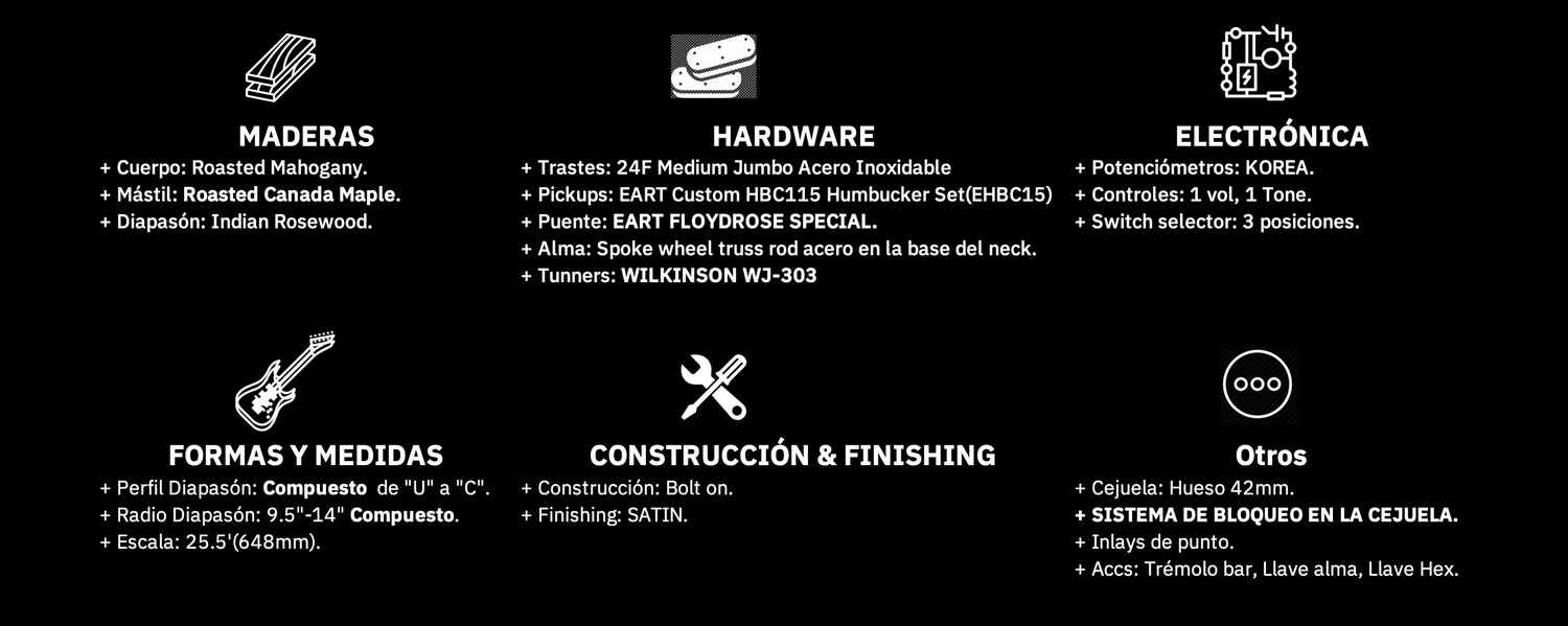 EART presents the AMERICAN NK-1980, the guitar that brings together ALL THOSE CHARACTERISTICS, but with the qualities of our brand: Roasted woods, stainless steel frets, truss rod at the base of the neck, and... truly fair price.