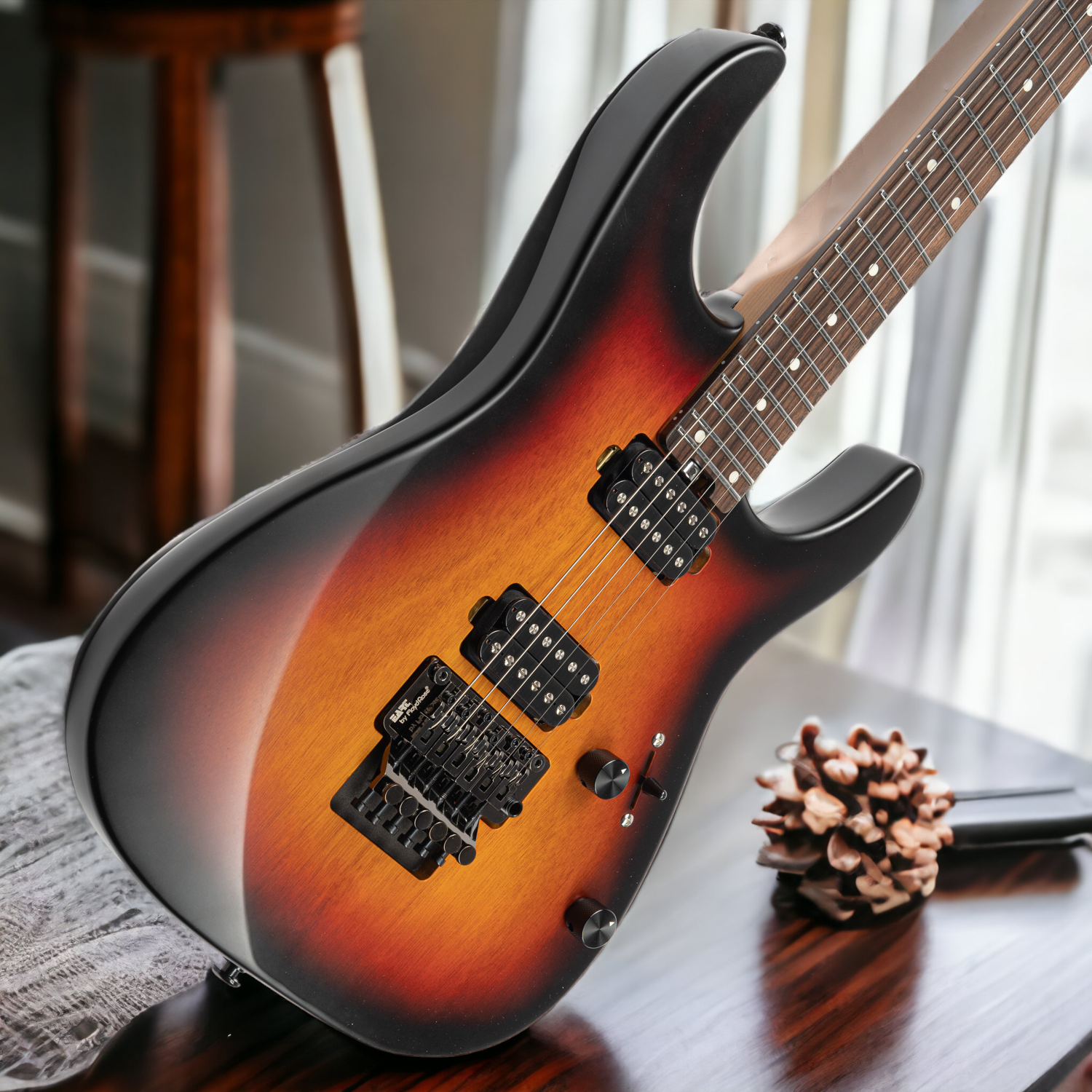 The story goes that back in the 70's, Eddie Van Halen started the classic Strat revolution by adding a humbucker in the bridge. From there an unstoppable revolution began. So it was that in the late 70's, luthier Wayne Charvel created the first Superstrat. And perhaps at the extreme end of the expression is the JEM popularized by Steve Vai. Extra undercuts, slightly sharper shape, flatter radius, 24 frets, tremolo locking systems, commonly the FLOYDROSE , and locking nut. A Strat with changes to play faster, with more stable tuning, to express more violent and aggressive touches.
