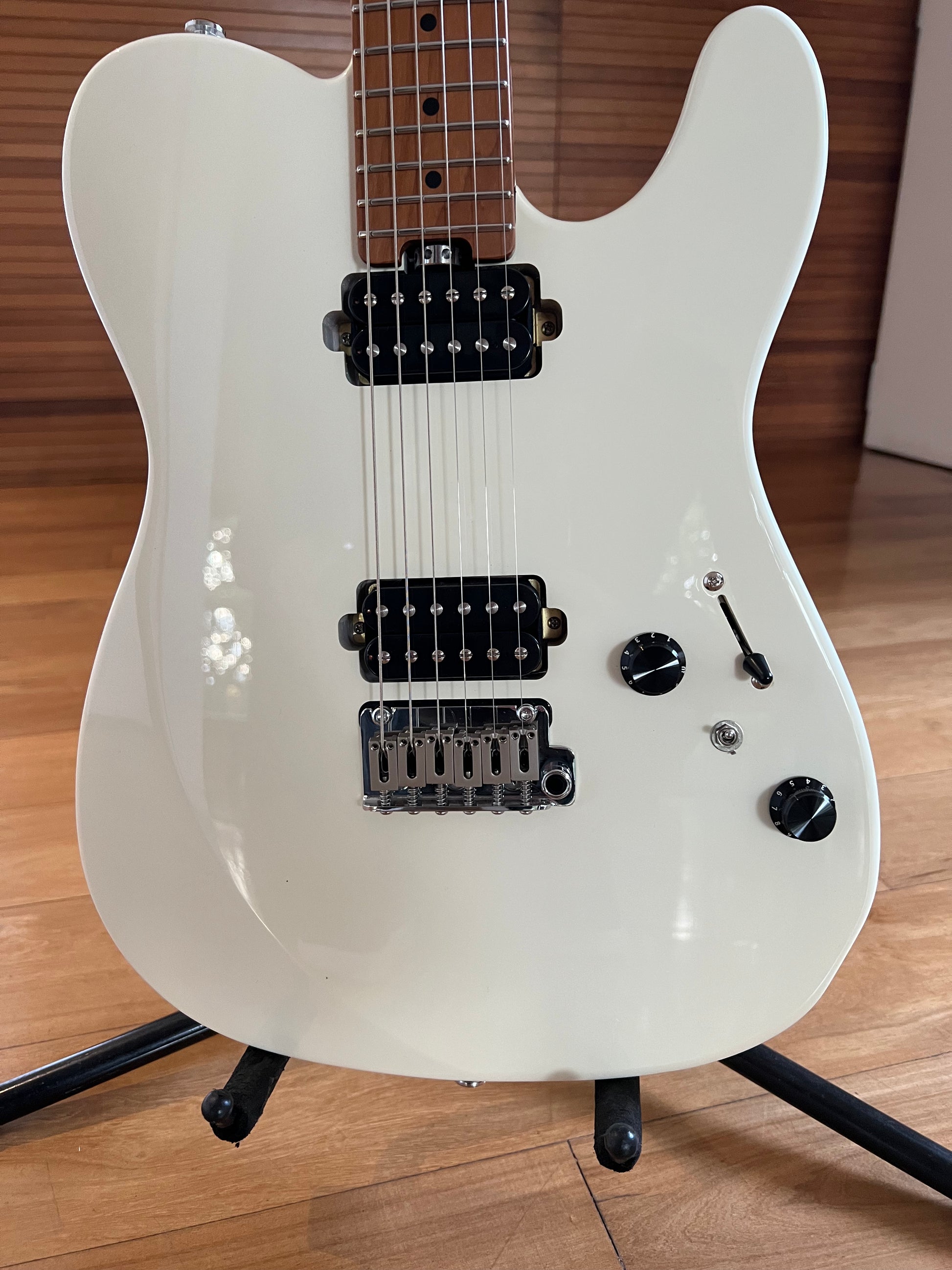 We created SUPERTELE... LOCKING TUNERS. STAINLESS STEEL frets. HR configuration. Double Humbuckers. SPLIT Single/Double coil, Tremolo bar? Yes, we are CRAZY, crazy like Da Vinci, like Dalí, like Picasso, but also like "Dibu" Martinez.... 6 POSSIBILITIES OF DIFFERENT TONES !!! Do you want to know how it sounds? LISTEN TO IT IN OUR EART ARENA.