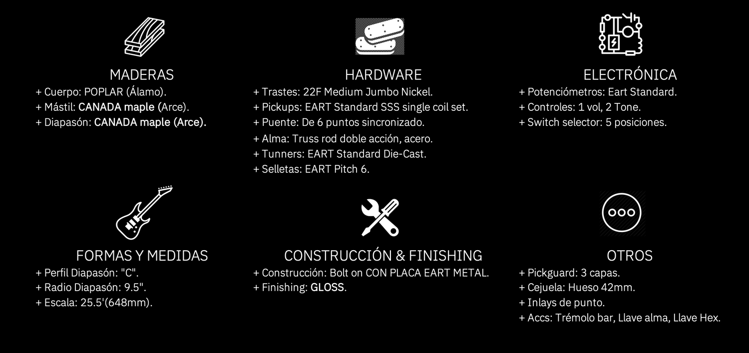 Were you looking for a STRAT with features that only EART offers you, and at the best price on the market? Then look no further. The POWER series from EART Guitars is designed for you. The series designed for those who are starting on this beautiful path of music and the guitar.
