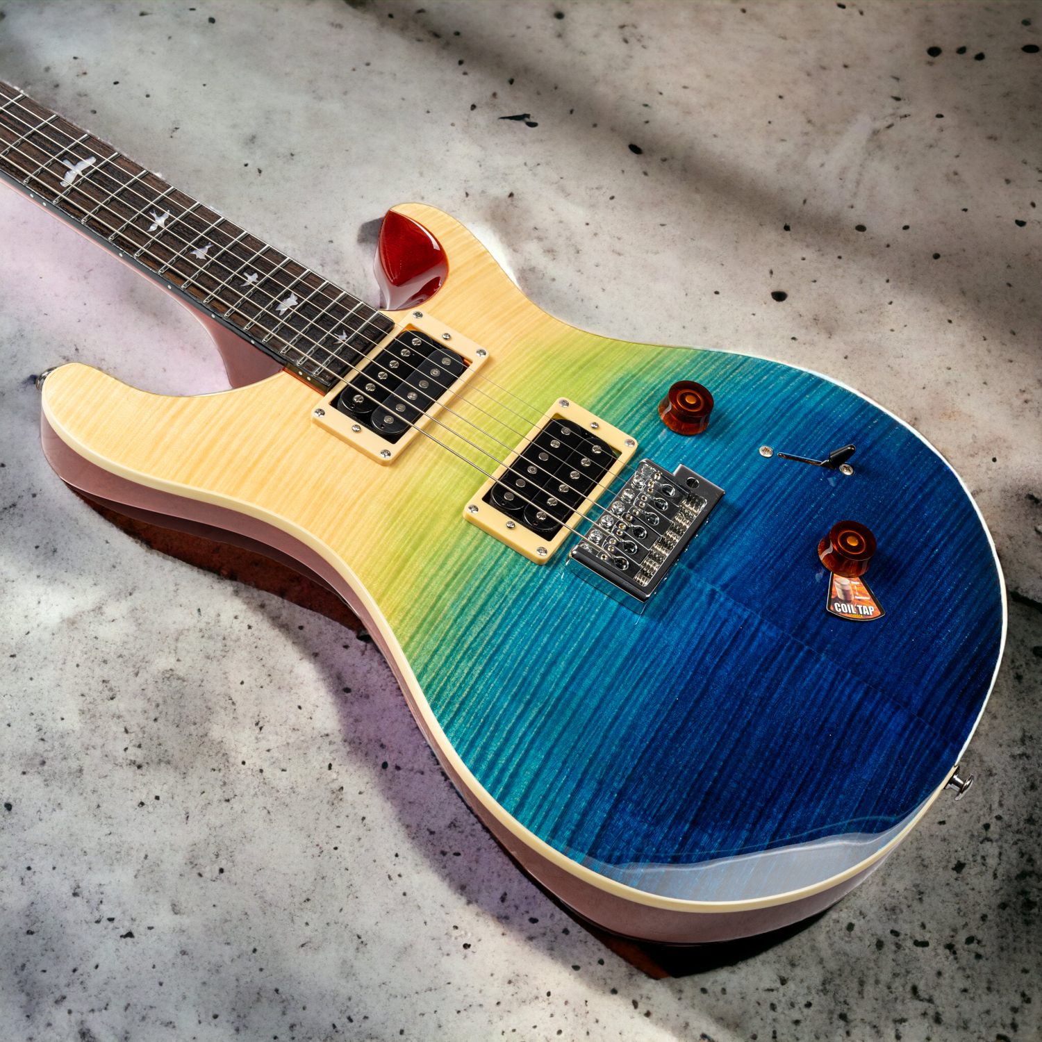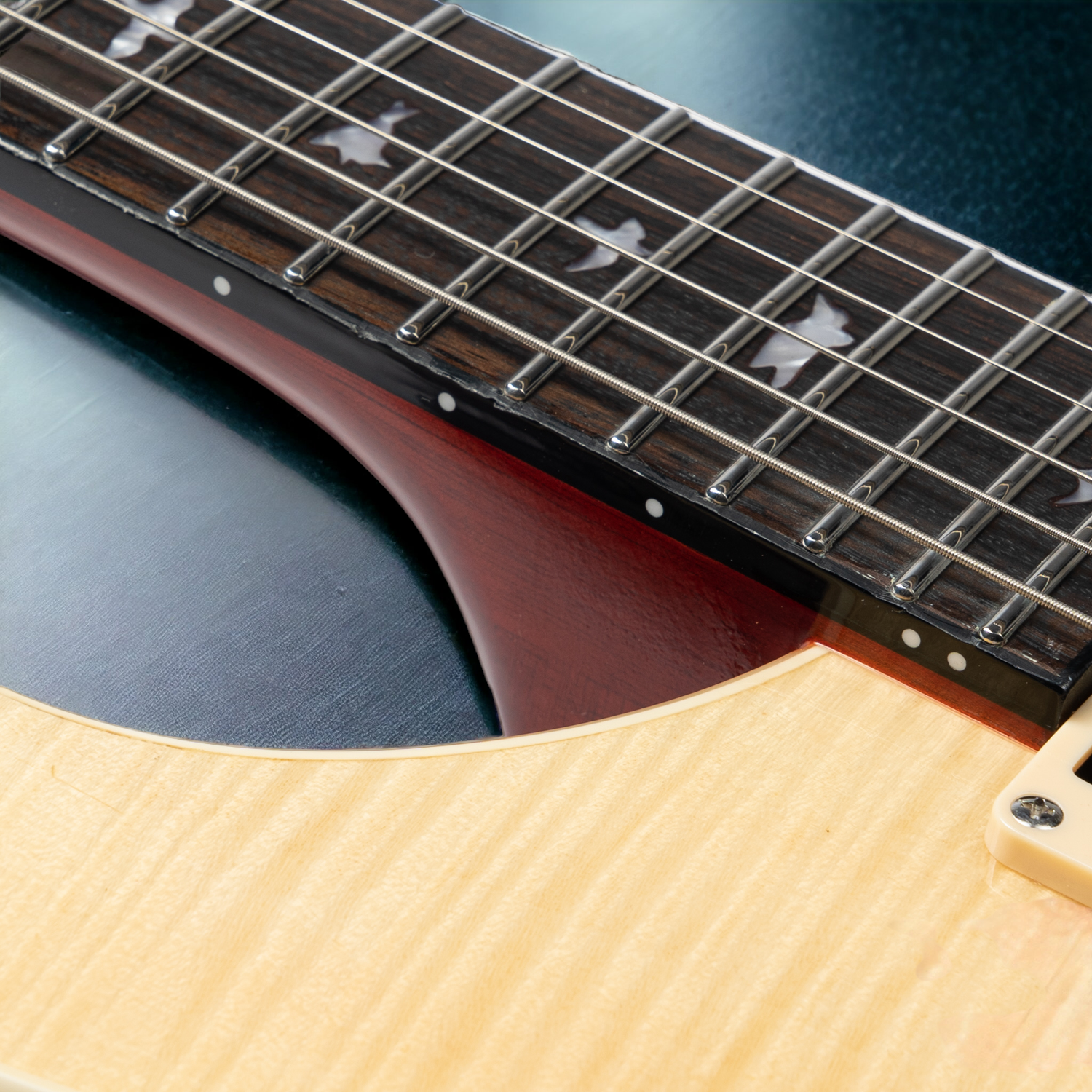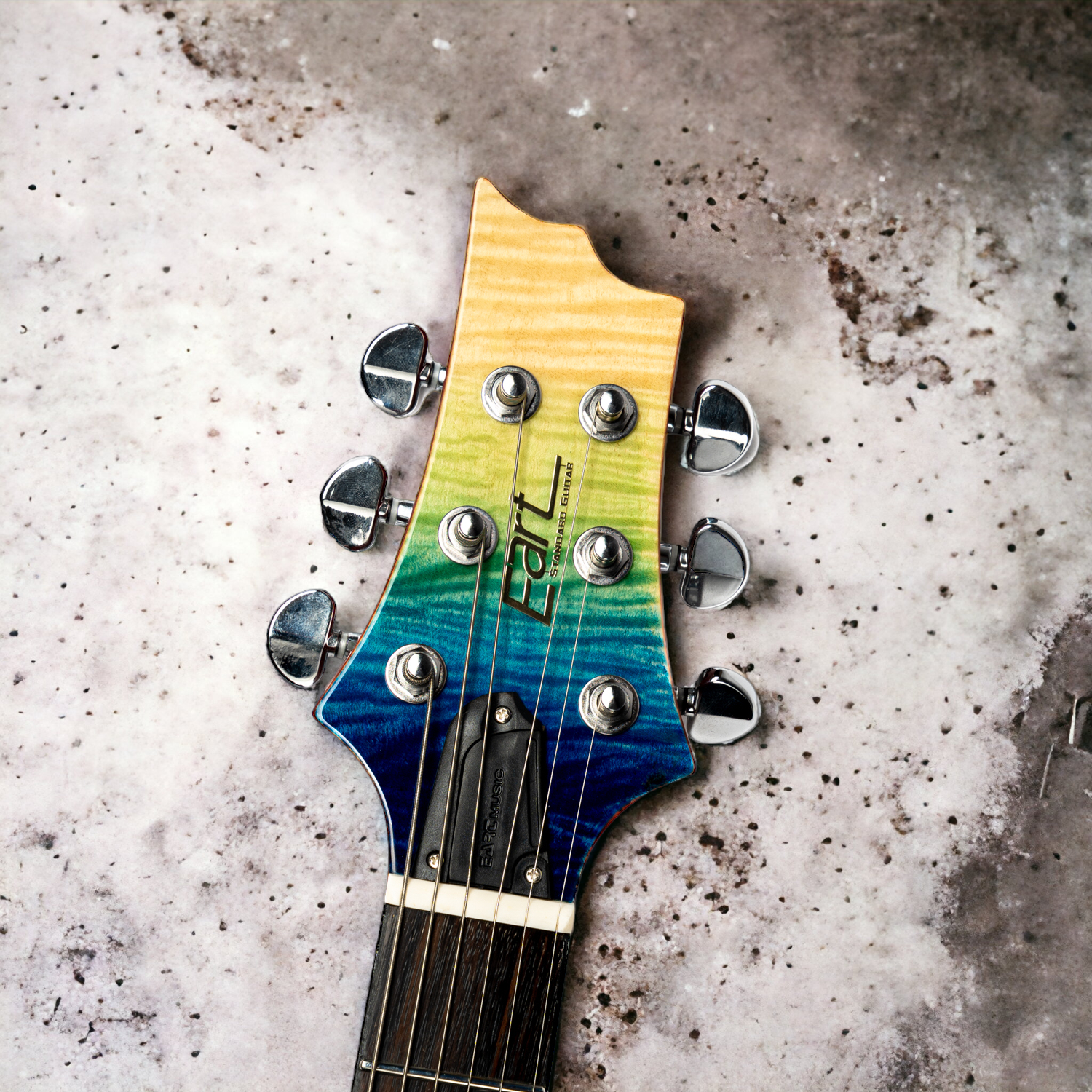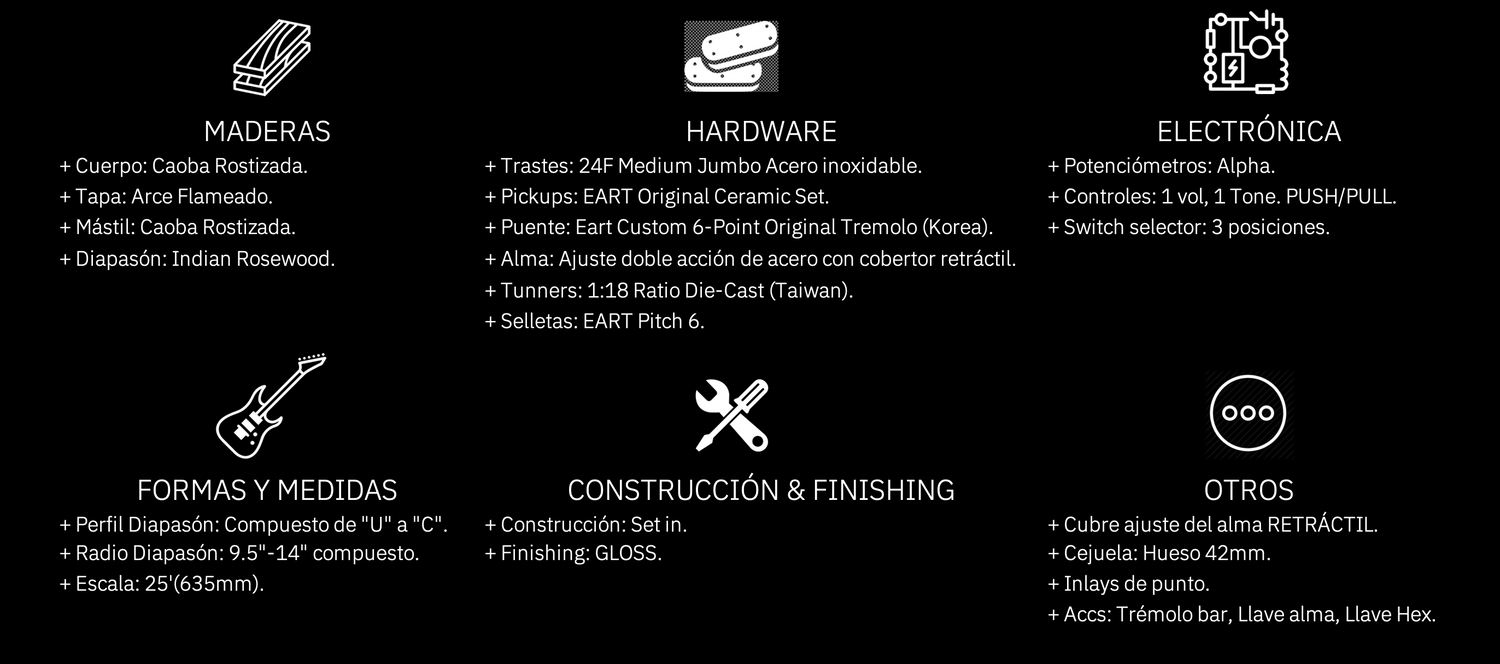 El estilo PR en un nuevo nivel... Tapa QUILTED MAPLE, Puente de 6 puntos sincronizado.TRÉMOLO BAR. PUSH/PULL on tone. Configuración HH. Trastes STAINLESS STEEL, Sistema cubre ajuste de mástil retráctil. LOCKING TUNERS de serie. Binding TOP. No vas a encontrar estas características en ninguna guitarra con esta calidad, y a este nivel de precio. Querés saber cómo suena? ESCUCHALA EN NUESTRO EART ARENA.